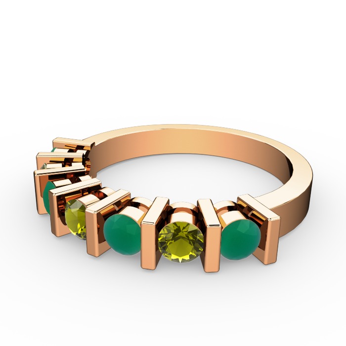 Peridot ve kök zümrüt 14 ayar rose altın yüzük