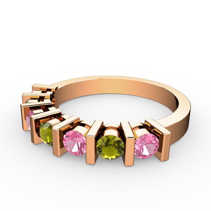 Peridot ve pembe kuvars 8 ayar rose altın yüzük