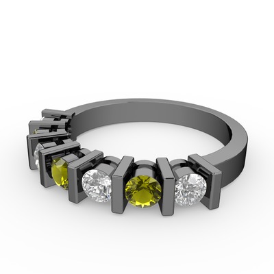 Peridot ve pırlanta 925 ayar siyah rodyum kaplama gümüş yüzük (0.33 karat)
