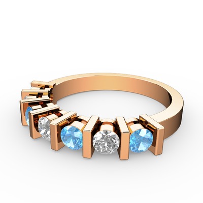 Pırlanta ve akuamarin 14 ayar rose altın yüzük (0.44 karat)