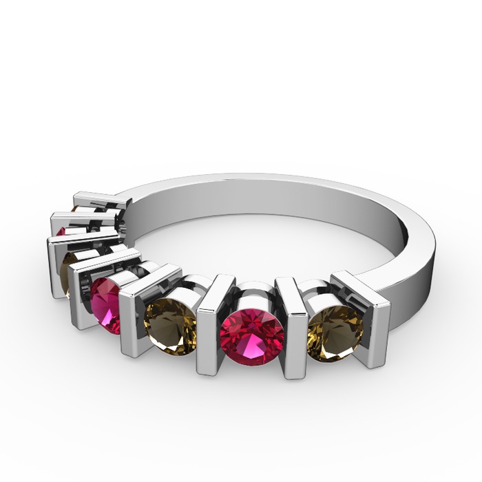 Rodolit garnet ve dumanlı kuvars 8 ayar beyaz altın yüzük