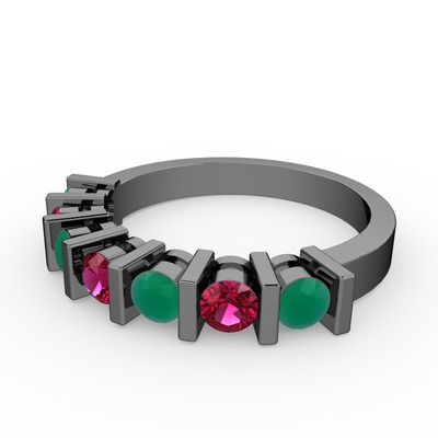 Rodolit garnet ve kök zümrüt 925 ayar siyah rodyum kaplama gümüş yüzük