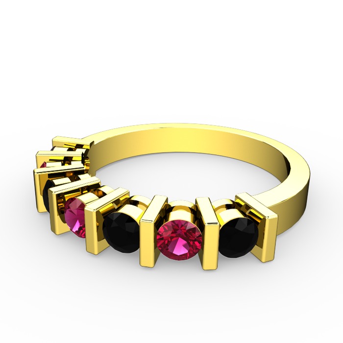 Rodolit garnet ve siyah zirkon 925 ayar altın kaplama gümüş yüzük