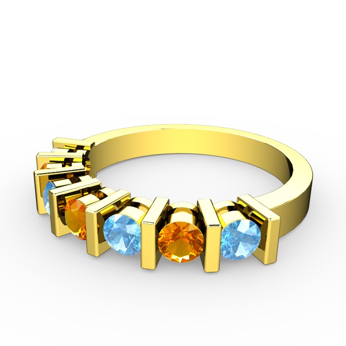 Sitrin ve akuamarin 925 ayar altın kaplama gümüş yüzük