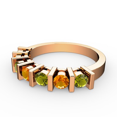 Sitrin ve peridot 925 ayar rose altın kaplama gümüş yüzük