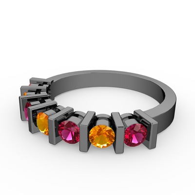 Sitrin ve rodolit garnet 925 ayar siyah rodyum kaplama gümüş yüzük