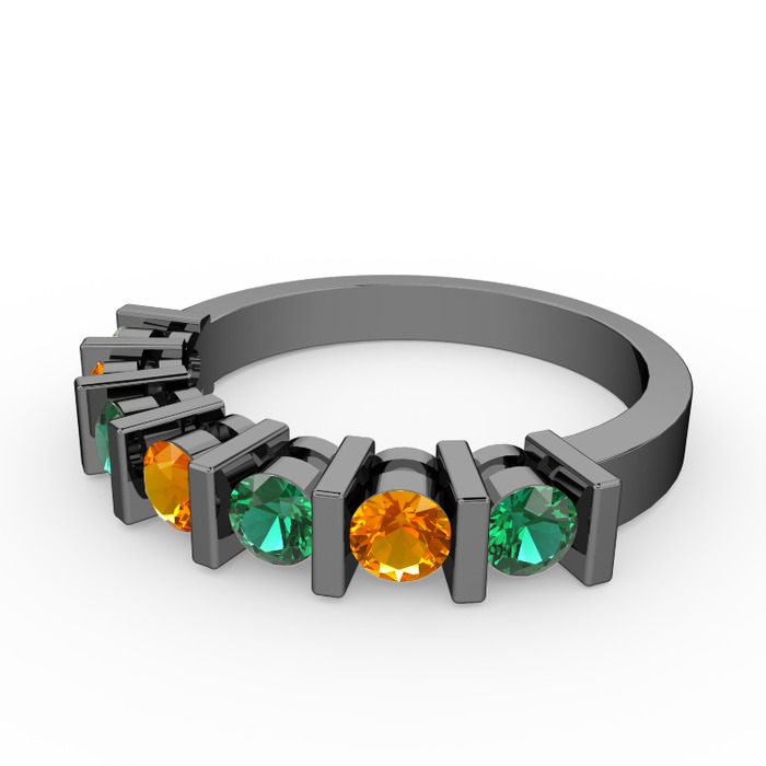 Sitrin ve yeşil kuvars 925 ayar siyah rodyum kaplama gümüş yüzük