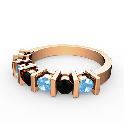 Siyah zirkon ve akuamarin 18 ayar rose altın yüzük