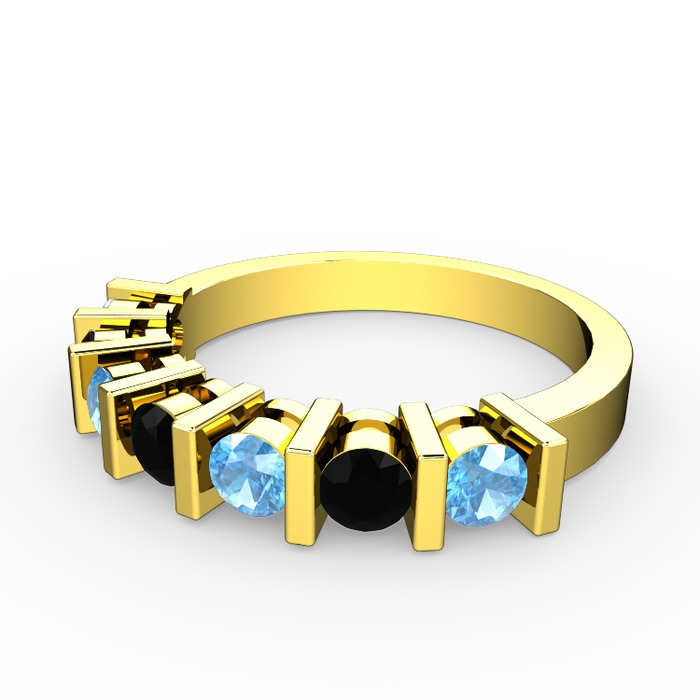 Siyah zirkon ve akuamarin 925 ayar altın kaplama gümüş yüzük