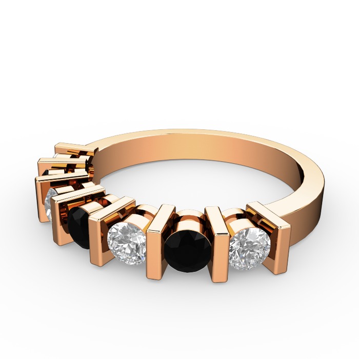 Siyah zirkon ve beyaz zirkon 14 ayar rose altın yüzük