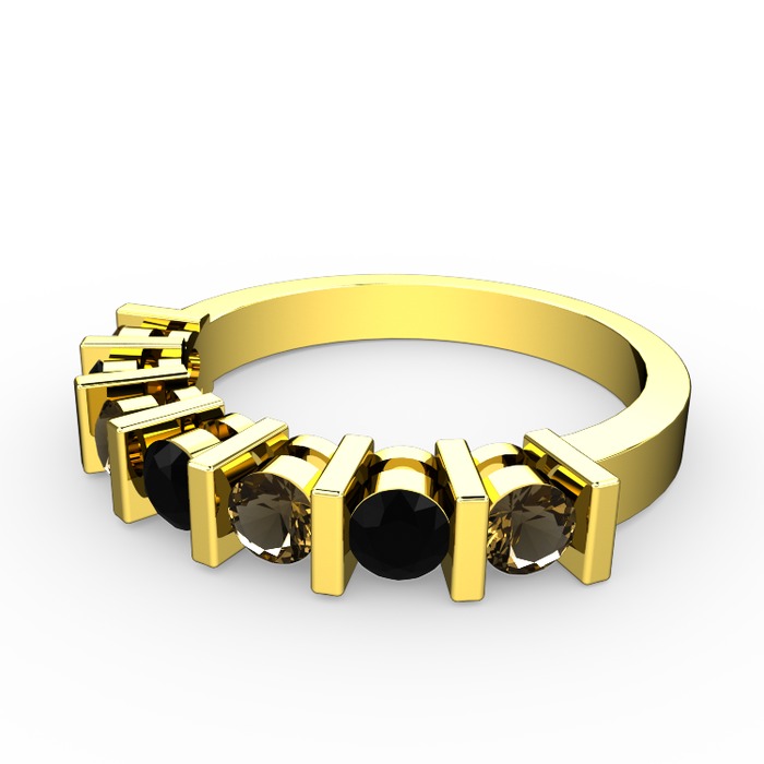 Siyah zirkon ve dumanlı kuvars 18 ayar altın yüzük