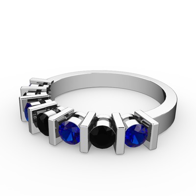 Siyah zirkon ve lab safir 8 ayar beyaz altın yüzük