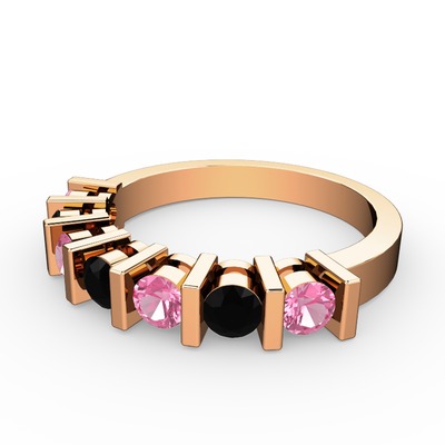 Siyah zirkon ve pembe kuvars 14 ayar rose altın yüzük