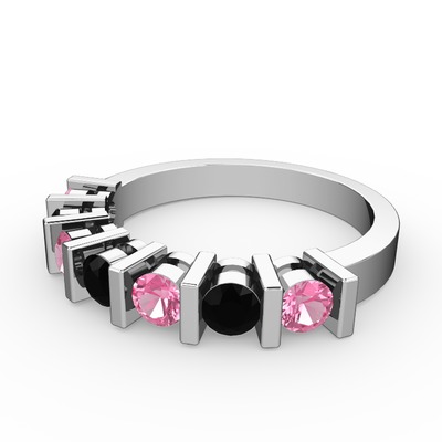 Siyah zirkon ve pembe kuvars 18 ayar beyaz altın yüzük