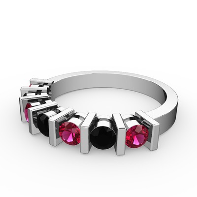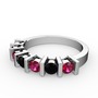 Siyah zirkon ve rodolit garnet 18 ayar beyaz altın yüzük