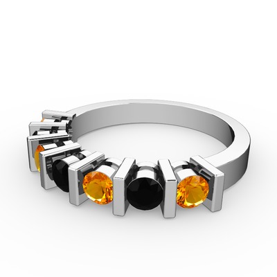 Siyah zirkon ve sitrin 14 ayar beyaz altın yüzük