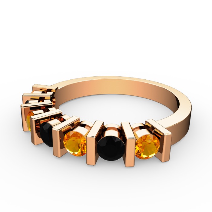 Siyah zirkon ve sitrin 18 ayar rose altın yüzük