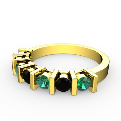 Siyah zirkon ve yeşil kuvars 18 ayar altın yüzük