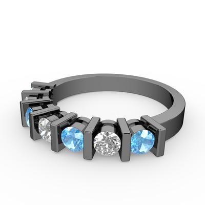 Swarovski ve akuamarin 925 ayar siyah rodyum kaplama gümüş yüzük