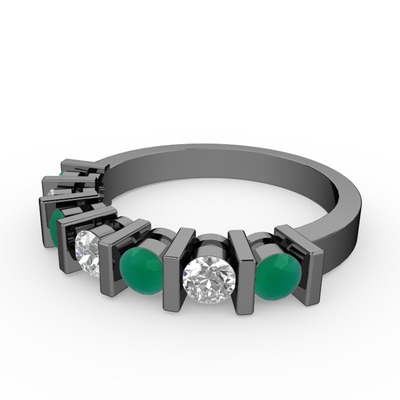Swarovski ve kök zümrüt 925 ayar siyah rodyum kaplama gümüş yüzük