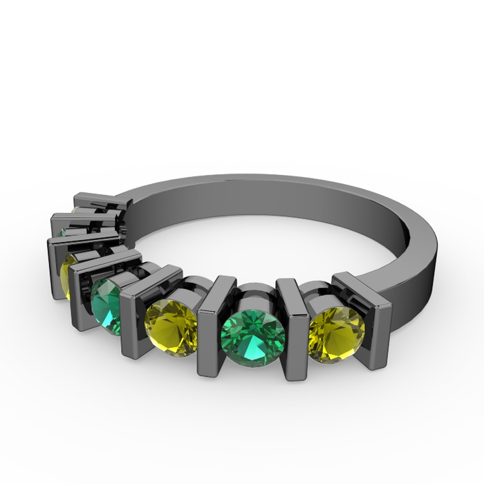 Yeşil kuvars ve peridot 925 ayar siyah rodyum kaplama gümüş yüzük