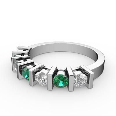 Yeşil kuvars ve pırlanta 14 ayar beyaz altın yüzük (0.33 karat)