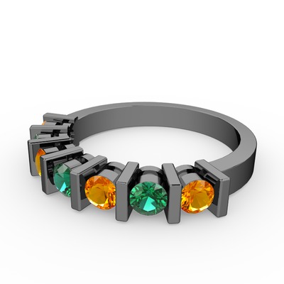 Yeşil kuvars ve sitrin 925 ayar siyah rodyum kaplama gümüş yüzük