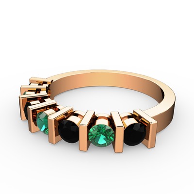 Yeşil kuvars ve siyah zirkon 14 ayar rose altın yüzük