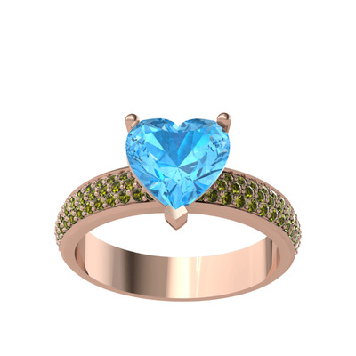 Akuamarin ve peridot 18 ayar rose altın yüzük