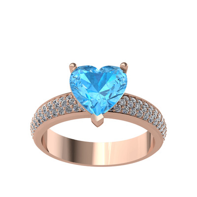 Akuamarin ve pırlanta 14 ayar rose altın yüzük (0.7392 karat)