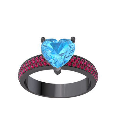 Akuamarin ve rodolit garnet 925 ayar siyah rodyum kaplama gümüş yüzük