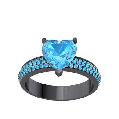 Akuamarin 925 ayar siyah rodyum kaplama gümüş yüzük