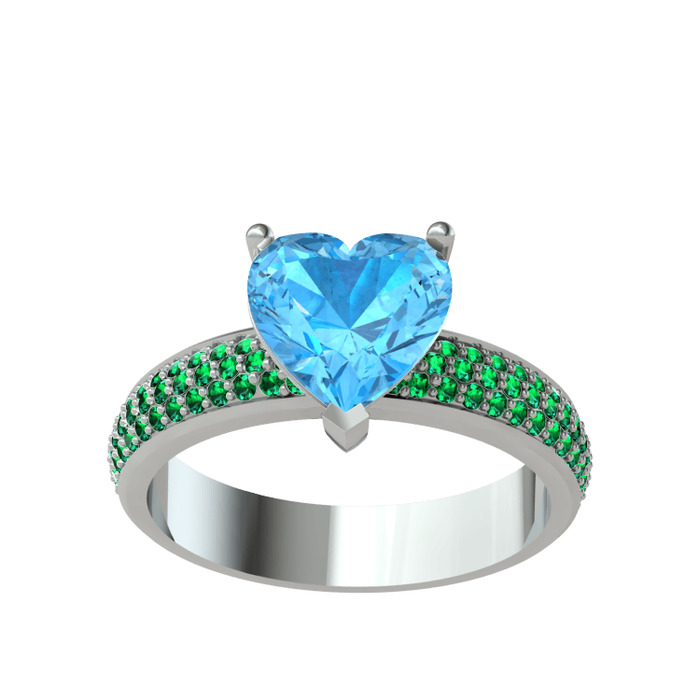 Akuamarin ve yeşil kuvars 925 ayar gümüş yüzük