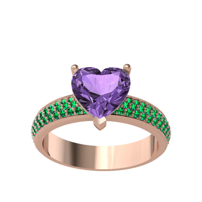 Ametist ve yeşil kuvars 925 ayar rose altın kaplama gümüş yüzük