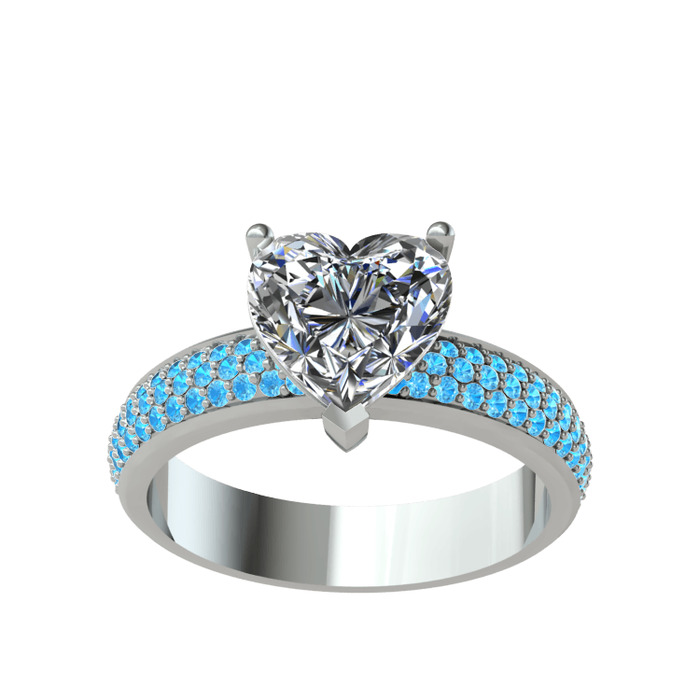 Beyaz zirkon ve akuamarin 8 ayar beyaz altın yüzük
