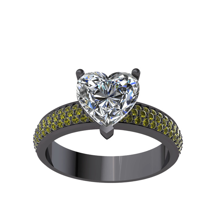 Beyaz zirkon ve peridot 925 ayar siyah rodyum kaplama gümüş yüzük