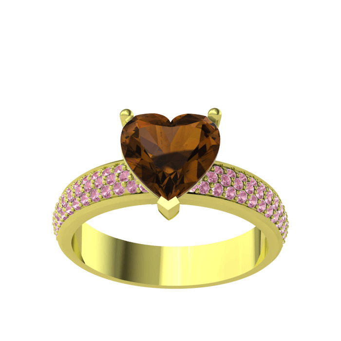 Dumanlı kuvars ve pembe kuvars 925 ayar altın kaplama gümüş yüzük
