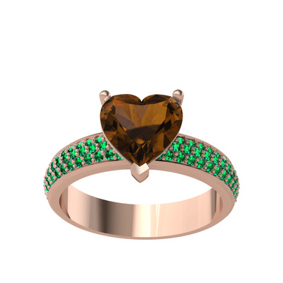 Dumanlı kuvars ve yeşil kuvars 18 ayar rose altın yüzük
