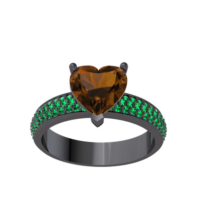 Dumanlı kuvars ve yeşil kuvars 925 ayar siyah rodyum kaplama gümüş yüzük