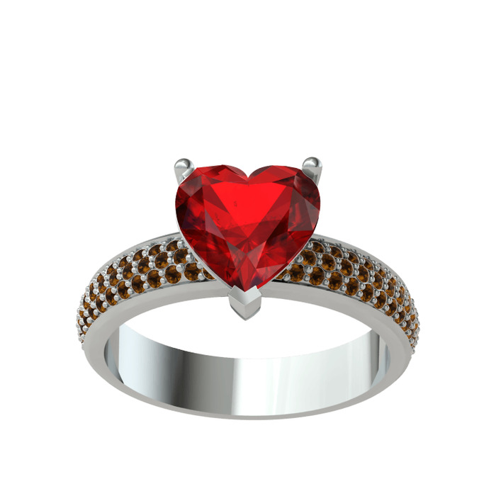 Garnet ve dumanlı kuvars 14 ayar beyaz altın yüzük