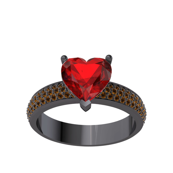 Garnet ve dumanlı kuvars 925 ayar siyah rodyum kaplama gümüş yüzük