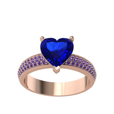 Lab safir ve ametist 925 ayar rose altın kaplama gümüş yüzük
