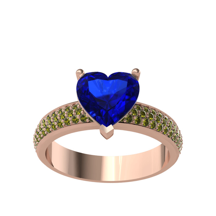 Lab safir ve peridot 925 ayar rose altın kaplama gümüş yüzük