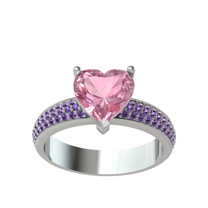 Pembe kuvars ve ametist 14 ayar beyaz altın yüzük