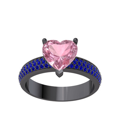 Pembe kuvars ve lab safir 925 ayar siyah rodyum kaplama gümüş yüzük