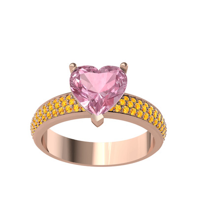 Pembe kuvars ve sitrin 18 ayar rose altın yüzük