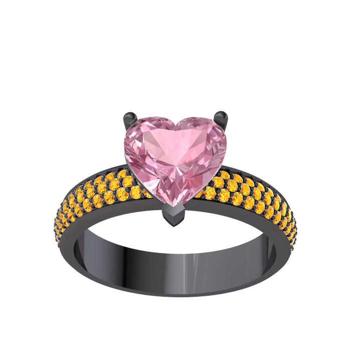 Pembe kuvars ve sitrin 925 ayar siyah rodyum kaplama gümüş yüzük