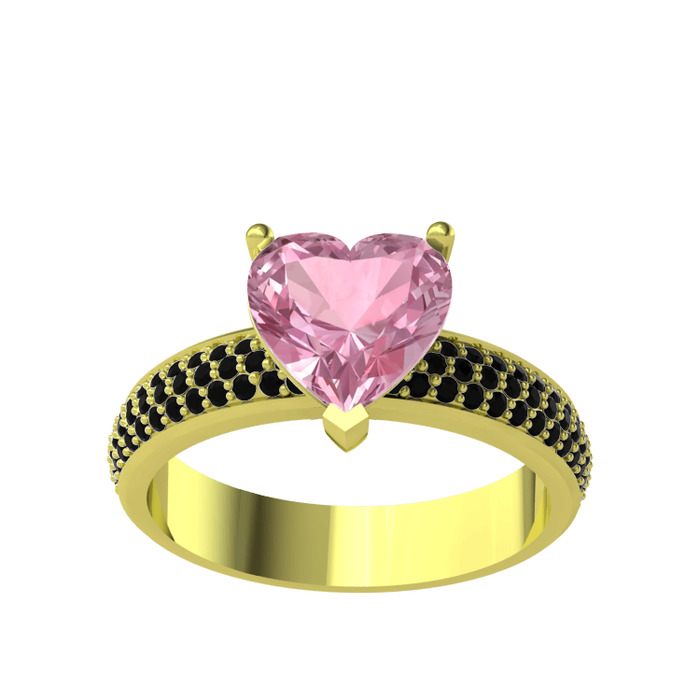 Pembe kuvars ve siyah zirkon 18 ayar altın yüzük