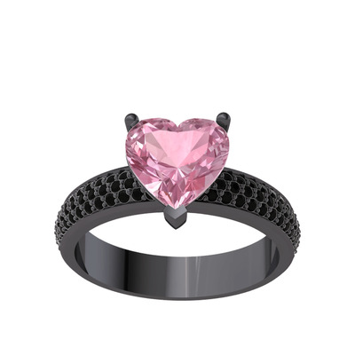 Pembe kuvars ve siyah zirkon 925 ayar siyah rodyum kaplama gümüş yüzük