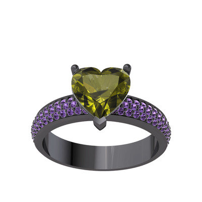 Peridot ve ametist 925 ayar siyah rodyum kaplama gümüş yüzük